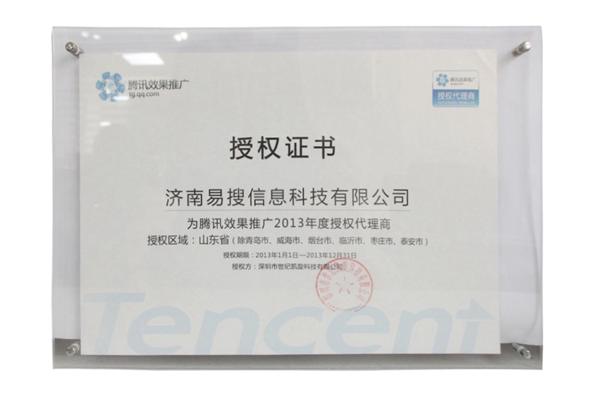 13年騰訊效果推廣授權證書