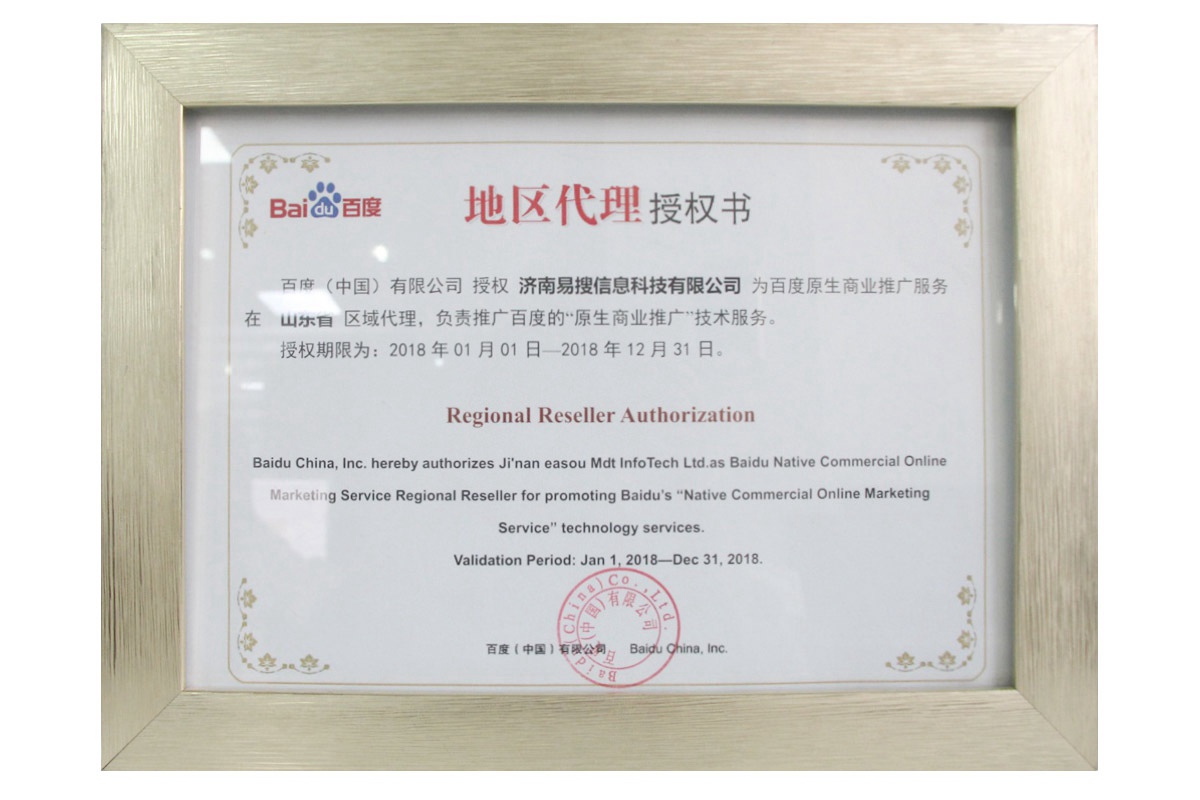 18年百度原生商業(yè)推廣服務授權書