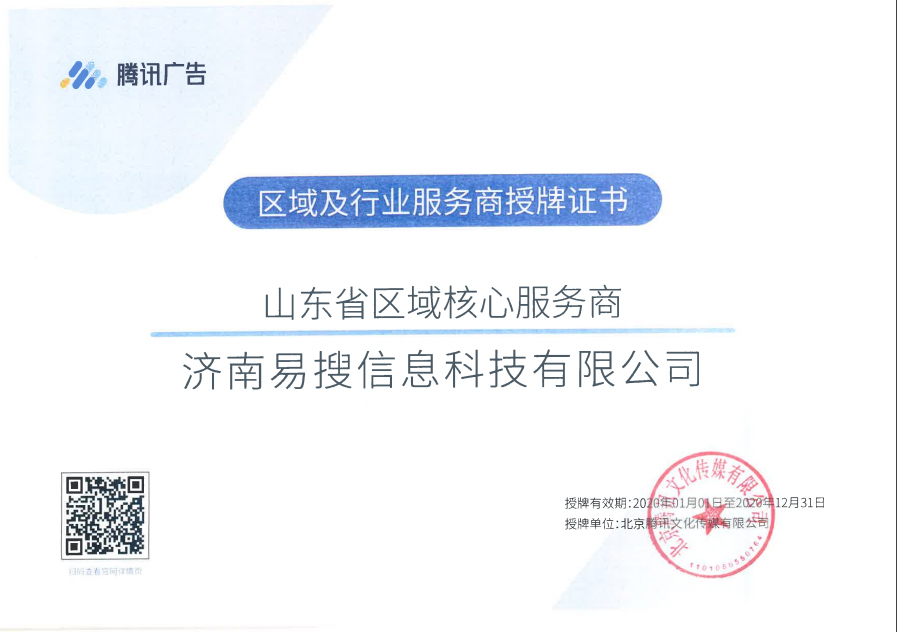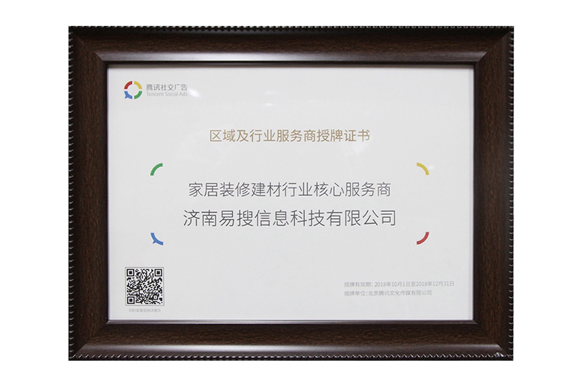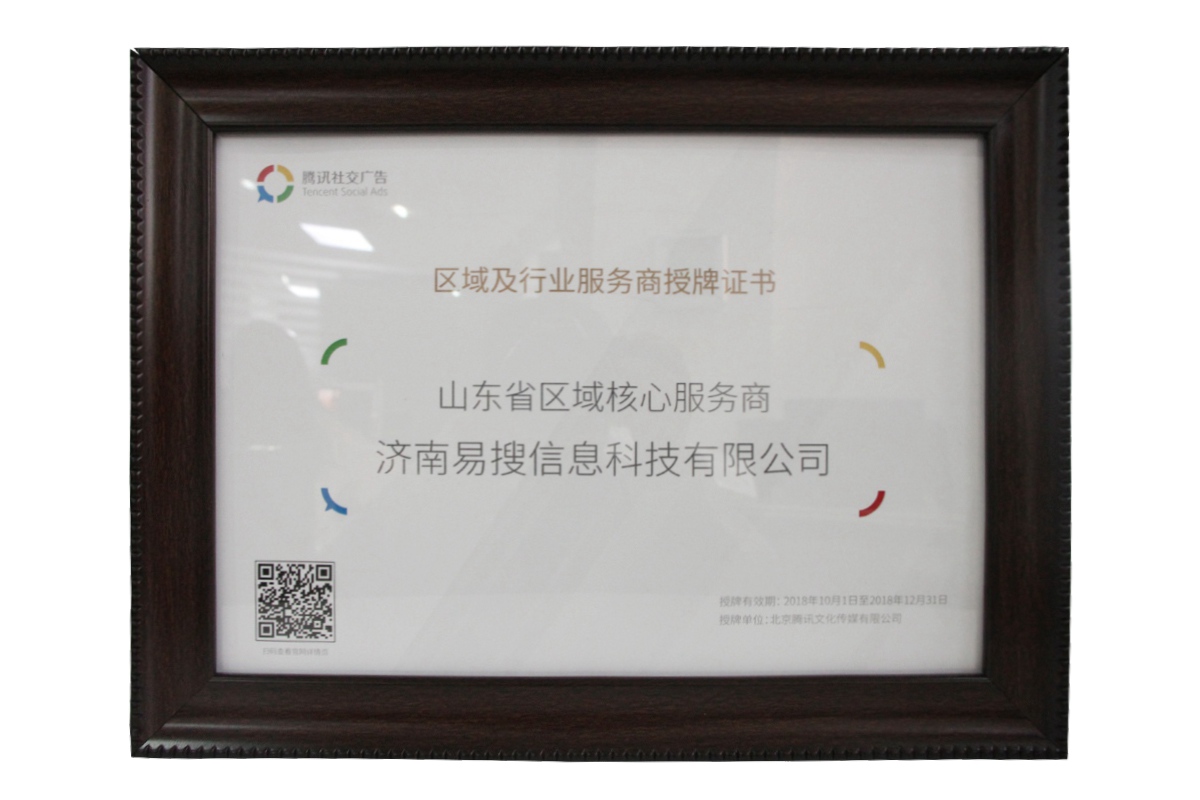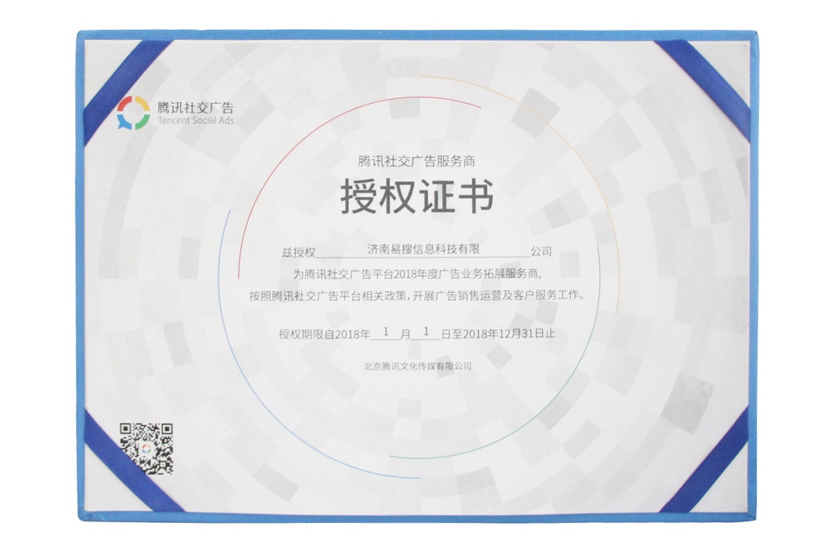 18年騰訊社交廣告服務商授權證書