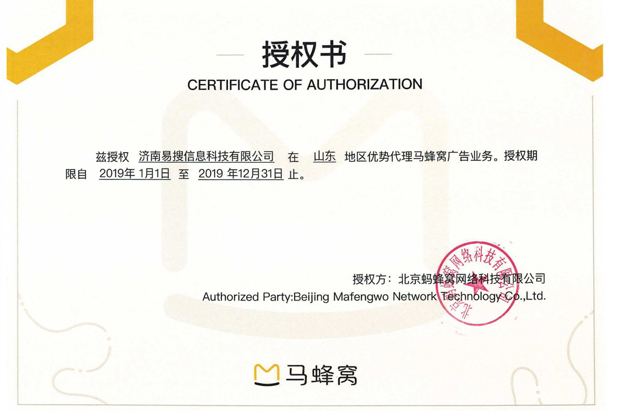 搜狗公司濟南、聊城、濱州、泰安、德州、濟寧、臨沂、棗莊地區(qū)獨家代理授權書