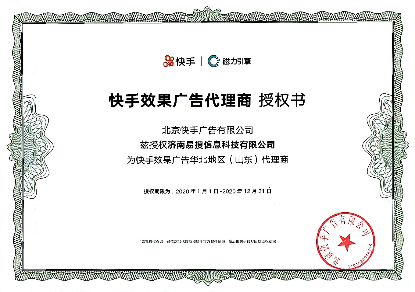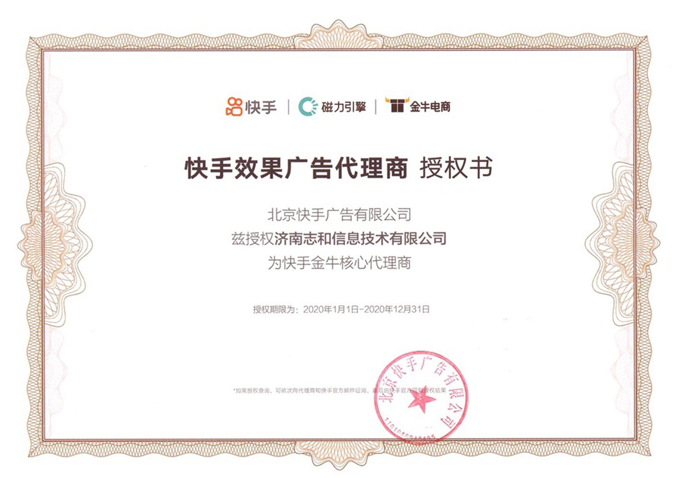 快手效果廣告代理授權書(金牛電商)